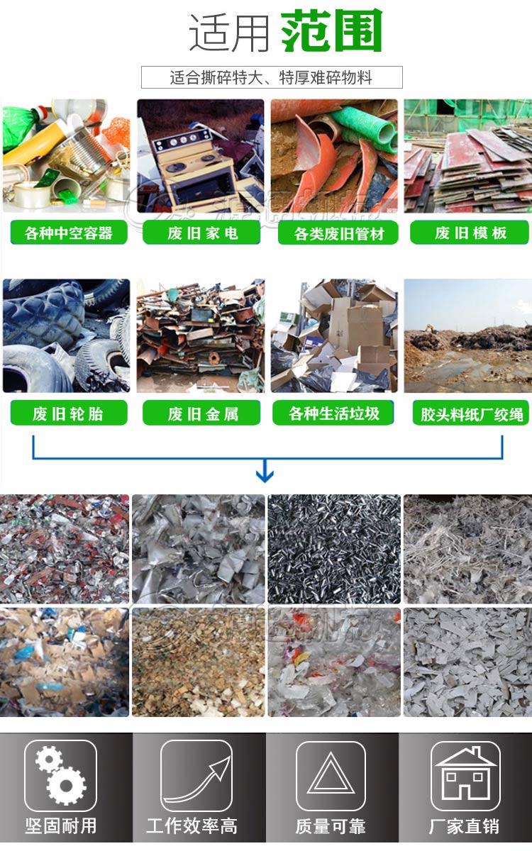 1:厚重動刀,破碎功率高,刀具均采用合金鋼鑄造,堅固使用壽命長。